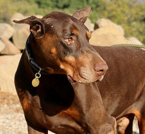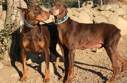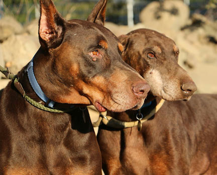 Charlie and Rocky, a bonded pair of Senior Dobermans who came