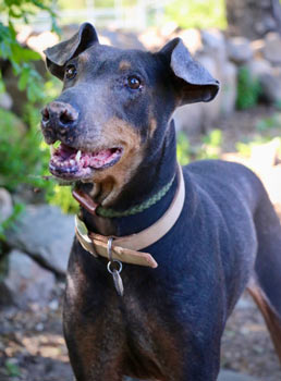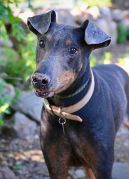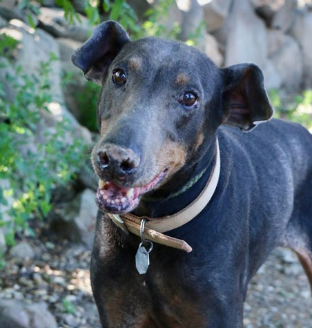 was adopted from Doberman Pinscher Rescue in 2016 at the age of