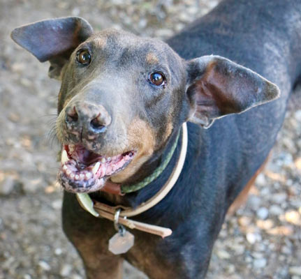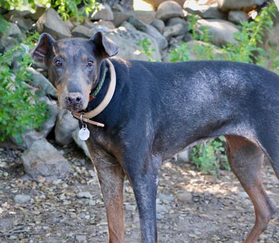 not had good care, though she always had the typical patchy blue-Dobie