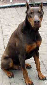 He is about 7 years old, red/rust, cropped, docked, and neutered. It is apparent that