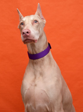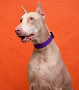 pull on a leash, and appears to be house broken.