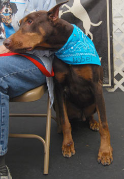 very nicely on his leash. He grew up with other Dobes but