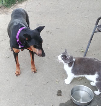 away and his wife was no longer able to care for the Dobermans