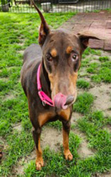 year old Bonnie came to rescue with a black and tan Doberman by