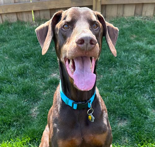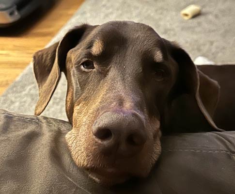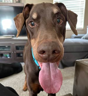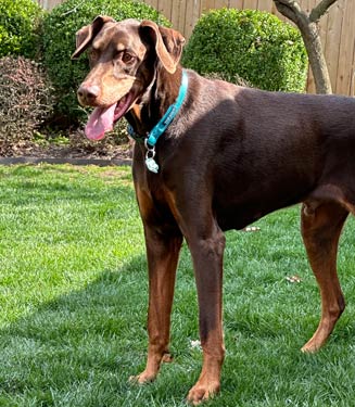 Doberman with super soft natural ears and a docked tail.