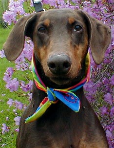 ears and a docked tail. Tyler, like many Dobermans, would prefer
