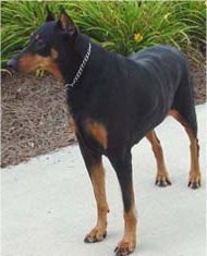 Avita is 7 years old, black/tan, spayed, cropped, and docked. She is micro-chipped,