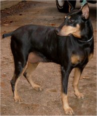 Bessie is 7 years old, black/rust, cropped, docked, spayed and micro-chipped.