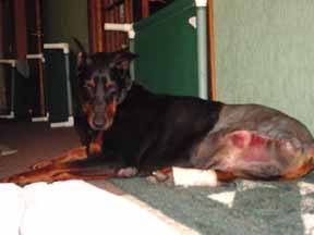 one brave Dobe!! He will have to go to a VERY SPECIAL HOME!!