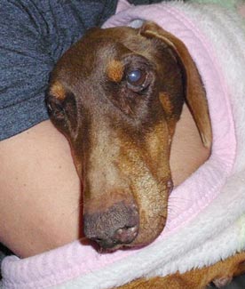 Throughout her ordeal, this beautiful Senior Doberman has shown