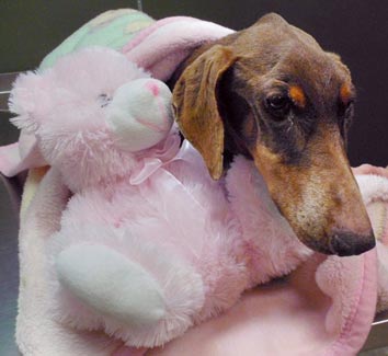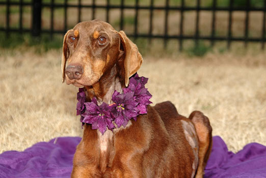 in a permanent foster home she shares with a sister Doberman and