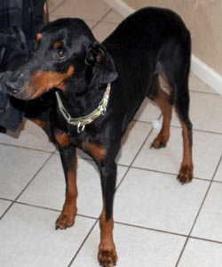 Doberman you'll ever meet. He is active and is enjoying his new