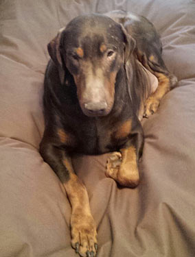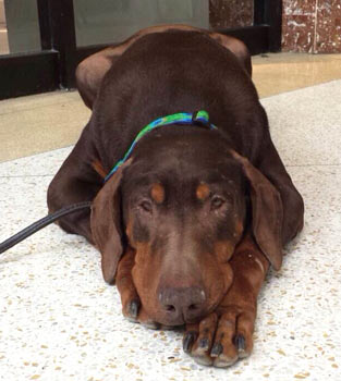 is one of six Dobermans saved from horrible conditions while being