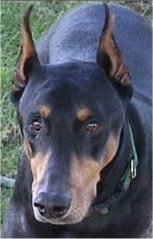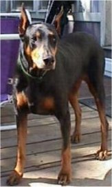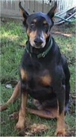 She is a very sweet, beautiful 7 ½ year-old spayed black and tan girl, with cropped ears and